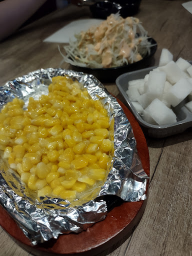 What we ordered: Boneless chicken in sauce Garlic Butter Fries Order comes with radish, a cold slaw, and butter corn in a skillet
