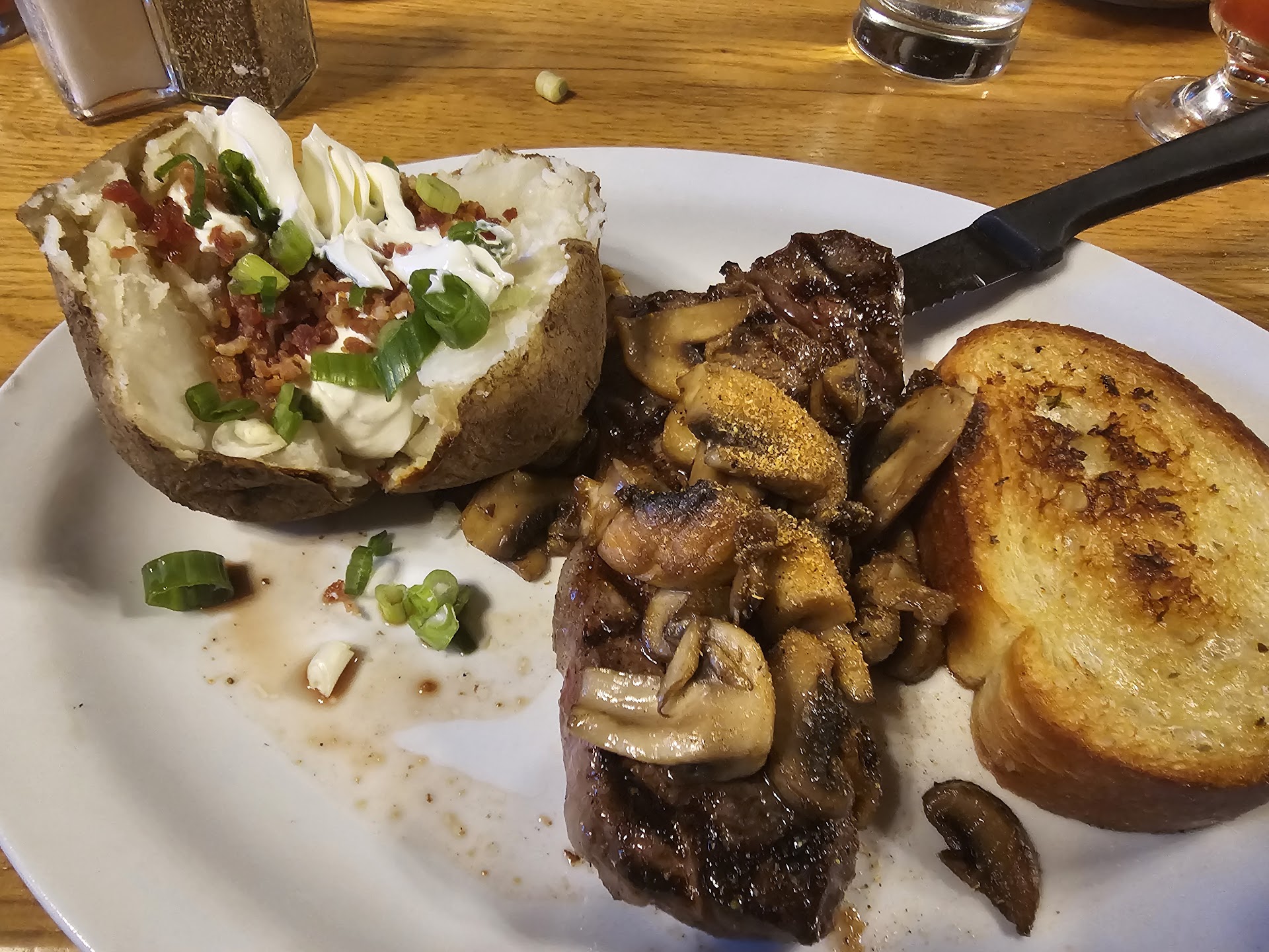 Had two 12 ounce striploins. Ordered mine med rare, it came rare, I am okay with underdone. Order my wifes medium, it came rare, sent it back. Same steak comes back 15 minutes later, still rare, sent it back again, comes back 15 minutes later and now is well done. I was already long finished my meal. My wife ate it, even though it was overdone as she was hungry and we had an appoinment.