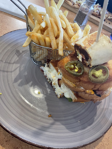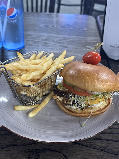 Dare to be Different. A JalapeƱo coleslaw on a honey breaded chicken breast burger. Absolutely amazing. Flavors you'd never think of combining for a mouth watering (not spicy) meal. The sauce to fry ratio was impressive for the sweet potato fries. I dunked every fry and almost had left over sauce. Wife had the Honey Apple Chicken Salad. Wow I never thought cinnamon could be blended in to meal so perfectly. Very generous with the feta cheese and perfectly cooked chicken. Moist inside with a crisp outside.