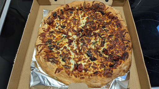 Ordered from this place due to the reviews, pizza has as much crust as the center portions which is a huge let down, it was very expensive for so little pizza, it took over an hour to have food prepared and delivered to a hotel that was 500 meters away from the restaurant, the pizza was very wet and feel apart when you try to left it and must be eaten with fork and knife... And the cheese sticks were served with katalina salad dressing sauce which was not good, you need marinara sauce for those which is what every other restaurant does because it's good. Wouldn't order pizza from these guys again, or...