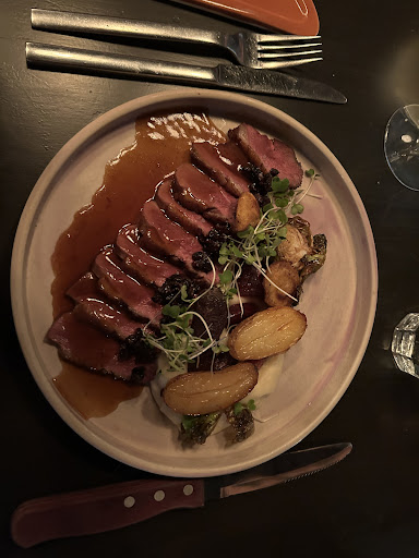 Read moreThis is a surprising culinary gem in a town of mediocre pub food. Every dish was subtle and sophisticated and made using high quality ingredients. We started with the mushroom "crème brulée" mousse and the veal tartare. Both dishes were devine. The Lion mushroom mousse was easily one of the finest appetizers I've ever had, including several Michelin star restaurants. The tartare was also delightful. For our mains we had magret de canard and sweetbreads. These were conventional but very well executed without any overpowering elements in a medaly of balanced flavors. For dessert we had a signature carrot cake which was not overly sweet and quite enjoyable. Service was attentive and personable. Overall one of the finest dining experiences we've had in Canada. You won't find better within 50 km. Reservations...