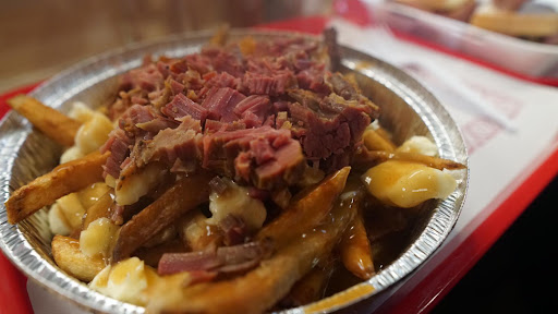 Got the Montreal smoked meat poutine ($19.76) and a hamburger ($7.38) with everything on it (ketchup, musterd, and relish).