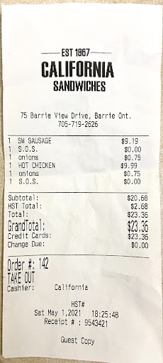 Read moreCalifornia Sandwiches in Barrie may not be the cheapest option around, but let me assure you, the combination of exceptional quality and generous portions makes it worth every penny!