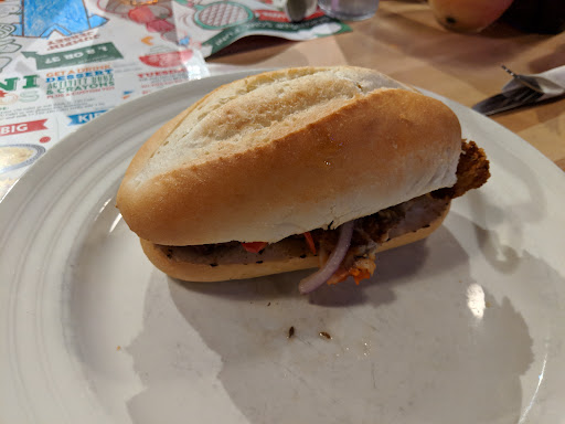 The food itself was such a let down. I ordered the chicken parmesan sandwich, the wife ordered a penne pasta and the kids had chicken and fries. Not only was the parmesan sandwich much smaller than pictured on the website, but it was mediocre tasting at best. For $15, I expected a large portion and I expected it to taste phenomenal. It hardly had any mushrooms, peppers or sauce on it. I've made better ones at home.. If you want a real parmesan sandwich, go north a bit to Mondos. $11 will get you a huge sandwich absolutely loaded with ingredients.