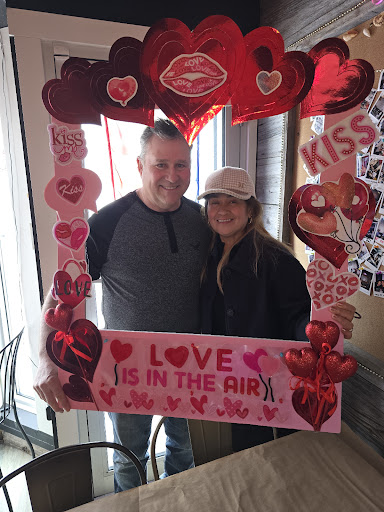 Wow! What a treat! My wife, her cousin and boyfriend and I had a hankering for some Filipino food. My wife and her cousin are Filipinas, so we decided to check out La Isla Manila. It being our anniversary and in close proximity to Valentine's day we decided to indulge ourselves. The restaurant is located on the corner of Maple and Dunlop in downtown Barrie. There is lots of on-street parking in the area and after hours in the alley adjacent to the Salvation Army. As we visited on a Tuesday afternoon, the place wasn't too busy. The staff had tastefully decorated the restaurant for Valentine's day including a backdrop and a frame, both of which we used.
