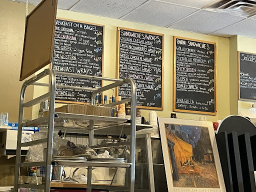 OH AND their breakfast on a bagel âthe Canadianâ is soooo delicious!! The ladies who own the cafe are so kind and welcoming and are always happy to serve you! Very cute hole in the wall cafe with hidden gems on the menu!! Does get busy from 10:30-11:30 because the high school has their lunch but the service is fast and there are quite a few tables to sit at as well...