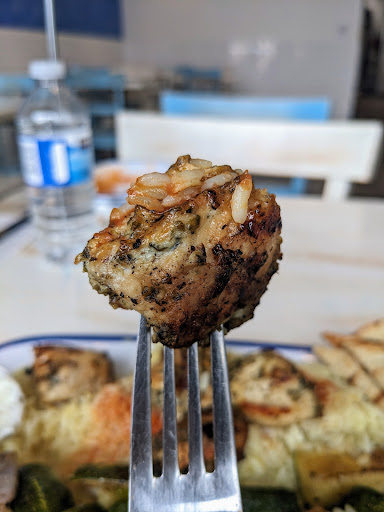 This is baaaaaad. One star for a friendly cashier, but thatâs it. We went there 5:30 pm on Saturday night. Probably it was busy time for them however... Wait time: 45 min. I think they might have forgotten about us until I spoke up. The restaurant: casual. Clean. But half of forks and knives that were already set up on the table were dirty. Price: not worth $29 for chicken souvlaki dinner and kids meal (two chicken strips and French fries) Taste: Iâm sure there are a lot of different versions of Greek, but it wasnât something I expected from any restaurant... Chicken souvlaki - too salty. No flavour of âgrillingâ. Inside of chicken was pink ( it was almost cooked). No flavour of herbs although there were massive herb-like pieces all over the chicken. Greek rice - it was ok if the salty tomato sauce wasnât on it. Again, no additional flavour other than chicken broth on rice itâs self. Greek potato - again, no flavour other than chicken broth and salt. No lemon, garlic, olive oil, or any herbs. Massive amount of salty tomato sauce covering all over the potato destroyed every bits of goodness (if there were any). Salad - the tomato slices were mushy as if it was out in the open area for more than a half day. No freshness. Feta chees were too dry and gathering of tiny pieces like a size of dry rice. I did not have courage to try dressing. Chicken strips - it must have been cooked âfrozen stripsâ from a package. They were that uniform. Yet, it was the best part of whole meal. French fry - dry and old. Probably cut up from real potatoes. But visible greyish parts of meat of potato and black indentations on the skins... that tells me no careful triming was done prior to...
