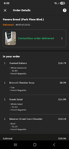 While we could use UberEats, the extra fees make it cost-prohibitive for an office of 10+, so the Panera website/app are our only pickup options without hidden costs. Unfortunately, both are consistently unreliable, forcing us to order elsewhere most of the time.