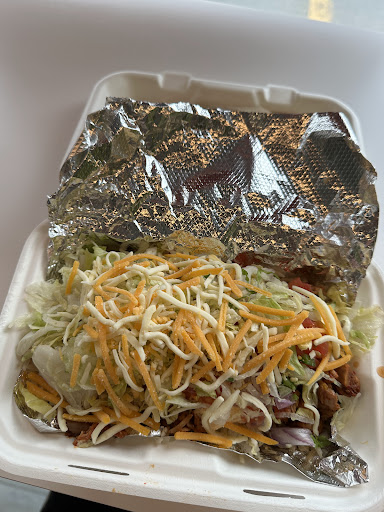 Not suggested. Spicy chicken bowl was served in a regular box with an aluminium foil placed on bottom. How could someone eat with a fork(provided by them) when you have aluminium foil in the bottom. The fork is going to pierce through the foil and you will eat the pieces of aluminium foil eventually. They were Out of stock of medium salsa, and black beans as well. Should inform the customer as soon as they walk in if they are out of something major not after they have already waited for 20 minutes.