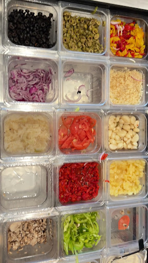For the base, they’ve got some fun options like creamy garlic, red sauce, spicy red, pesto, or even mix-and-match half-and-half. And yes, it’s all fire-baked thin crust!
