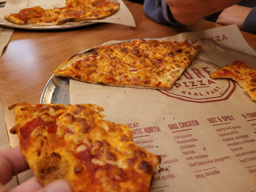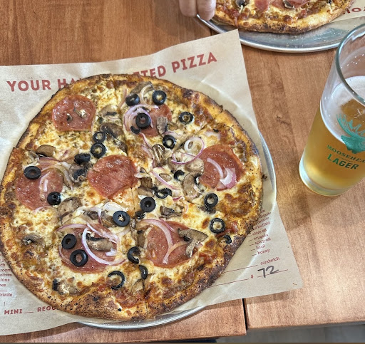 The best part? You get to build your own pizza with unlimited toppings—which is awesome. The staff walks you through the process, and you can finish it off with drizzles like balsamic, buffalo sauce, olive oil, spicy oil, or fresh basil. It really lets you get creative with flavors.