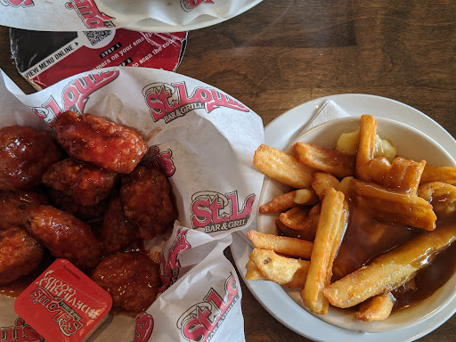 Read moreWhen we arrived and were seated at our table, a very nice server took our drink order. We then heard her get chastised by another server for taking our drink order at her table (we both got water, that's it). This other waitress brought our drinks and mine had blue particles in it. Back it went. Waiting well over an hour for your food, especially at lunch time, is not acceptable. There were not that many people at the restaurant. Our waitress blamed it on takeout orders. When our food did finally arrive my wrap was over cooked and my husbands boneless wings had the wrong sauce on them. We both upgraded our fries to poutine and you will see in the pictures not much care was put into that either...one had lots of cheese curds and the other had almost none. I think all of this would have been a bit easier to handle had we at least had a pleasant, attentive server but we didn't. We have had bad experiences at St. Louis in Collingwood, Wasaga Beach and now Barrie. There are too many other good restaurants around to ever waste our time and money at St. Louis Bar &...