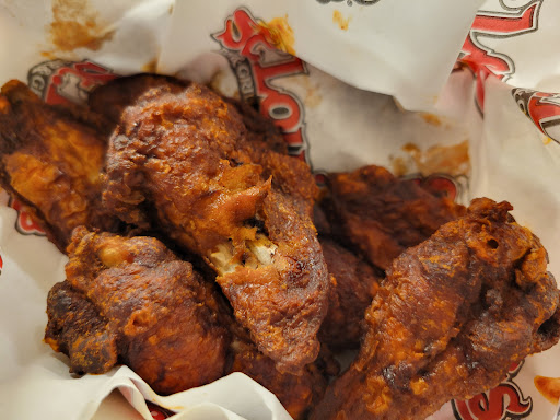 I always order the same thing. 1 lb of wings. Almost every single time do chicken wings come burnt. So much that i have to mention it to the servers to make sure my chicken is not burnt. Sometimes service is good depending on the server.W ate at the patio. Waited at the table for almost 20 minutes for our drinks. After 1 hr of arriving they brought our food. I expected it to be hot at least from waiting so long. Food came and it was warm as if it was sitting there. The server sat 3 other tables while we waited for our food. Two of them got their food and drinks First. We waited an hr just watching the server making drinks for her co workers who came to drink at the restaurant. Not to mention the manger with glasses and short hair who ignored us after we asked for extra sauce. I dont plan on coming or buying here anymore. We expected service to be better after covid. They dont even were gloves or wash their hands and they have barely half the people they used to serve and we still got bad service. We did get a 15 discount because they didnt have what one of us wanted. That still doesn't make up for the bad service that we...