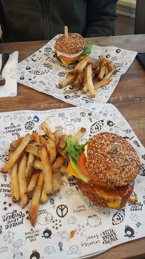 This is my first experience with a vegan restaurant and could be my last. Not sure where all the great reviews come from but it may be comparing to other vegan restaurants instead of restaurants in general. When we walked in we stood in line for five minutes before being greeted by a smile-less lady. She didn’t ask if we had been there before so at first we didn’t even realize there was a restaurant seating around the corner. You are required to order, pay, and tip before receiving your food. It wasn’t overly long for food delivery but this is when it went further downhill, the fries (a ridiculously small portion) were cooked very poorly. Some fries were shrivelled from over cooking while some were raw in the middle. The $5 upgrade of a jackfruit poutine was gross but that wasn’t cooking just personal preference of not liking fruit and fries together. I order a jalapeño burger and my wife order the rib-less sandwich. They obviously messed up the sauces because my wife’s sandwich was on fire spice wise and mine was not so we had to trade sandwiches. After the food was delivered and including our exit out of the building we never saw anyone who worked there again. They didn’t ask how are food was, where we could have complained about the mix up of spice levels, the poorly cooked fries, or the distaste for the jackfruit poutine. They never stopped by to ask if I wanted another beverage, and when we were finished we just got up and left, no one asked how our meal was or said goodbye or thank you. This meal with two drinks and two cookies was $57. An absolute ripoff. I can understand if it’s tough to cook vegan food, or if having fresh ingredients cost more, but if you can’t cook French fries you better hope you have unbelievable service. Unfortunately service was just as bad as the food. We planned to bring home and try the lasagnas, panzerottis, baked goods and more, but after the poor food and service we couldn’t convince ourselves to spend another dollar there. I was really hoping for a great experience as I wanted to start having less animal protein in our diets but this was a big let down. I gave two stars because the bean burger patty itself was decent, I actually liked my wife’s Robles’s sandwich (nice sauce), and the flow water and craft root beer were good. Hope this review helps this establishment work on their service and food...