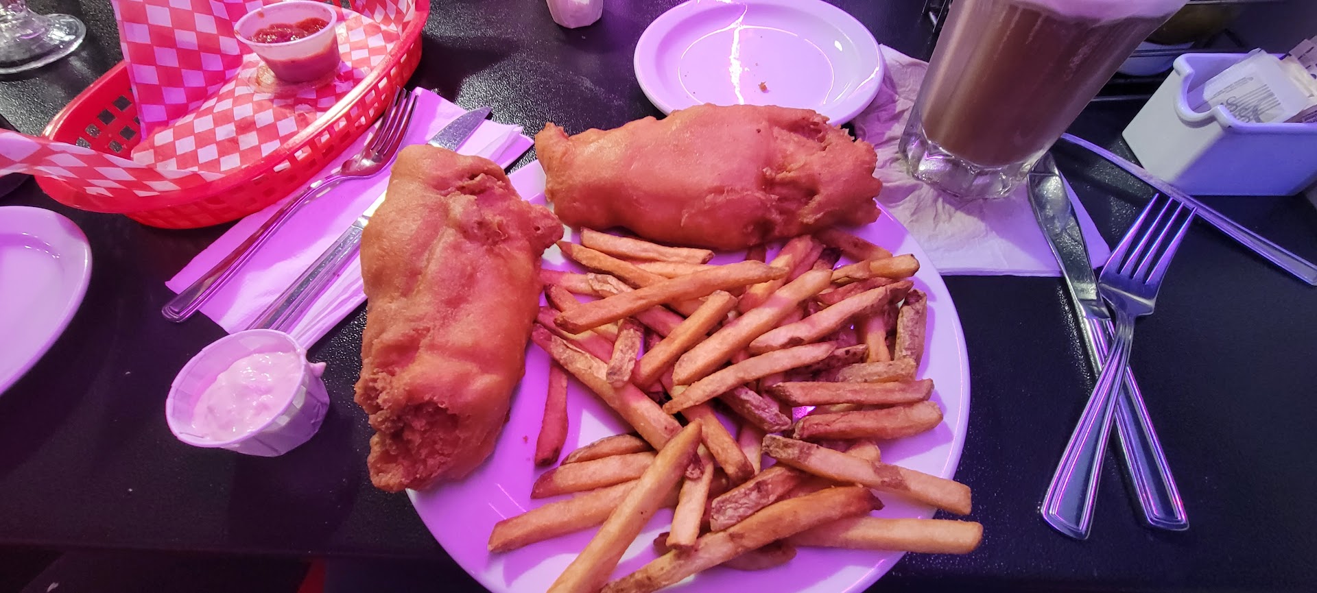A bit of a mixed feeling about the place. Overall, it was a great experience to visit a sort of classic North American diner. Polite and friendly workers, cool authentic atmosphere, quite normal prices for a very varied menu of food and drinks. There is even a special feature in the form of working old game machines. My wife and I ordered Meat Loaf with vegetables and fries and a Big Booper Burger to eat. Mill Cove beer and Vanilla Milkshake to drink. And a cup of regular coffee (something like nostalgia for old 90s movies from childhood. I suppose it will be understood only to those who grew up watching these movies in childhood living in another countries like was me)... So... I really liked the burger, the taste of the beer and the milkshake. I didn’t really like the Loaf, but I have my own complicated relationship with such rolls(I don't like very softy-viscous tastes in meat), It was good for my wife, so it wasn't a problem of the Loaf's taste itself. The cocktail was served in a small glass and the rest of the cocktail was given in a high metal cup. Controversial decision, I think it would have been better to just use the larger glasses... Coffee... Coffee does not get along with reheating. You can google why, and in such places coffee containers are constantly used for refilling and are constantly heated. So the taste was of course rougher than I would like to taste. But firstly, cream helps to make the taste better, and secondly, it is a good doping for drivers at night or in the morning, and this was important for truckers in the past for example, so we can say that I closed the gestalt of my childhood and partially enjoyed this coffee :) ....Otherwise, my wife and I liked this place. As a final word I would say: definitely try to visit it at least once, it is a win-win option. And whether to become a regular customer or not - is up...