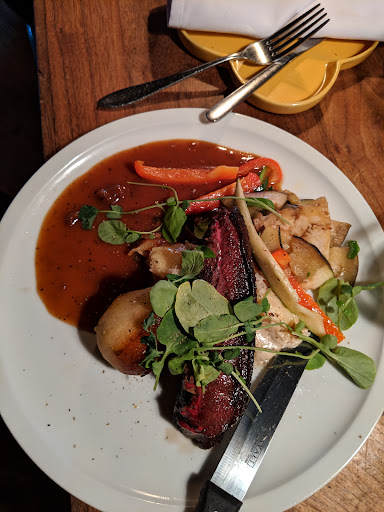 Read moreUn peu comme dĂ©crit par Philippe T... L'ambiance est bonne, la terrasse est charmante, la bouffe est bonne, mais service semble un peu dĂ©sorganisĂ©. On nous a assis au bar et une personne nous a finalement apportĂ©e menu sur un tableau d'ardoise aprĂšs 10 minutes, mais nous avions eu temps de l'Ă©tudier au loin... elle est repartie aussi sans mĂȘme nous expliquer et d'Ă©crire le menu. Nous attendions au bar pour ensuite avoir un place sur la terrasse. Nous avons eu le temps de regarder le chef Ă l'Ćuvre. Beaucoup de friture au poĂȘlon et la boucane voyageait dans le Resto. J'ajouterais un peu de ventilation. Par contre, ça rend l'endroit sympa, un peu comme si on est Ă la maison. Une fois Ă l'extĂ©rieur sur la terrasse, un serveur vient nous voir pour savoir d'oĂč on vient et oĂč on en est rendu? Pas trĂšs long pour recevoir l'entrĂ©e et trĂšs bon les escargots et la salade. Ă peu prĂšs 40 minutes plus tard pour le plat principal, mais osso bucco excellent, par contre pennĂ©s au fois gras un peu fade et la sauce crĂ©meuse est liquide. Par la suite, un autre serveur nous demande pour les cafĂ©s et sans mĂȘme que nous ayons eu nos cafĂ©s et desserts....une autre serveuse est arrivĂ©e avec la facture. Aujourdâhui, je fĂȘtais avec mon conjoint la prise de possession de notre nouvelle maison. Nous avons achetĂ© une bonne bouteille Ă la SAQ Ă boire avec une piĂšce de viande rouge. Mon conjoint a pris la puce du moment et moi le Surf&turf. Jâai hĂ©sitĂ© avec le bĆuf et pĂątes au fromage bleu qui semblait un plat allĂ©chant. Je me suis rĂ©visĂ©e en me disant que le surf & turf serait moins gras. Le surf& turf Ă©tait accompagnĂ© de lĂ©gumes tel quâune magnifique salage, poivrons jaunes et patates grelots cuites dans le gras de canard. La prĂ©sentation Ă©tait magnifique. Ă mon grand dĂ©solement, tout baignait dans le beurre Ă lâail, le steak, la salade, les lĂ©gumes et pommes de terres grelots⊠il y avait des tomates confites qui elles se mariaient trĂšs bien avec lâail et le reste du plat. Les patates aussi, mais gras de canard plus beurre Ă lâail⊠un peu dommage. Mon conjoint a goĂ»tĂ© Ă mon assiette et a compris pourquoi jâĂ©tais déçue. Jâai fait mes commentaires Ă la gentille serveuse Ălonia, dâune grande ouverture, en pensant que je faisais des commentaires constructifs. Jâen mâattendais Ă manger surf & turf, mais tout goĂ»te le surf, pas de turf⊠il semblait que je sois la premiĂšre Ă faire ce commentaire. Mon message ce soir est de dire au gens de ne pas se gĂȘner de dire ce que vous pensez vraiment dâune assiette. Le chef cuisine pour vous! En tout cas, si vous aimez votre salade chaude qui trempe dans le beurre Ă lâail et et turf qui goĂ»te le surf, câest votre affaire. Moi non et je lâai dit et je nâai reçu aucun crĂ©dit pour mon commentaire constructif. Vraiment dommage. DerniĂšre fois que jây allais. đ