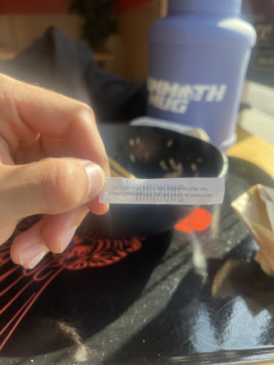 Je prends mes baguettes, je plonge dans cette étant de riz et de poulet vêtu d’un drap de sauce sucrée. Les saveurs s’arrachent mes papilles gustatives, qui saura charmer mon palais culinaire? Seul moi et Dieu le savent, car ce combat ne laissera aucun survivant.