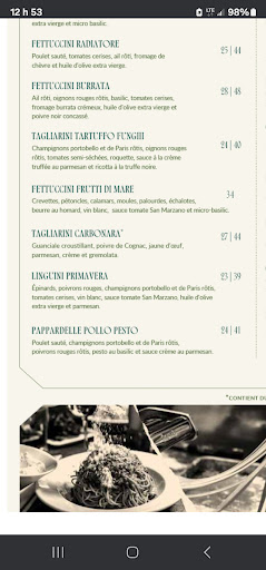 Par contre, j'ai commandé un plat de pâte primavera, que je suis habitué de manger dans une autre succursale de la même bannière, et le plat est arrivé avec de la sauce tomate. J'ai avertis un serveur et il m'a dit qu'on avait oublié de me le dire, et que le chef a la liberté de choisir ce qu'il fait avec le plat. Ok pas de problème c'est une erreur de communication il me rapporte le plat en cuisine pour m'en faire un sans sauce tomate. Je mentionne qu'habituellement c'est une sauce au vin blanc (ce qui est écrit sur le menu) On me rapporte mon plat, avec une sauce crémeuse. Je mentionne que ce n'est pas ce que je suis habitué de manger dans l'autre succursale et que c'est sensé être une sauce à l'huile avec vin blanc et que ce n'est pas crémeux. On me dit "fallait me le dire que c'était des pâtes à l'huile que tu voulais!" (Ce n'est pas ce que je voulais, c'était ce qui était écrit sur le menu que j'aurais aimé) on me dit également que c'est toujours fait avec du parmesan la sauce au vin blanc (ça dépend des places faut croire). On me rapporte une 3e fois les pâtes, elle sont très clairement à l'huile, elle baigne tellement dedans que chaque bouché dégoutte. La coupe des légumes était complètement inégale et plusieurs des légumes étaient crus (poivrons rouge, courgettes et tomates cerise) les rapinis (il n'y avait que 2 branches très inégale) était fibreux et très peu cuit. J'avais l'impression de manger des pâtes au beurre avec aucun assaisonnement, j'ai même du rajouter du sel (chose que je ne fait jamais au resto). Le premier ingrédients dans le menu est l'ail mais elle était introuvable.