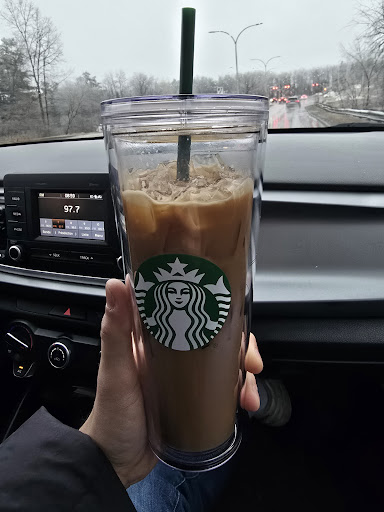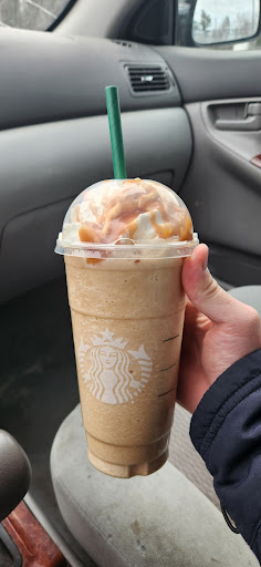 Read moreI see 7 employees (maybe more that I haven't seen) and the is only ONE at the cash register to take order.. She is new and stressed.. There is a line up and no one is helping her.. This Starbucks has a drive-thru, I see 6 cars getting their order before I can place my order.. 20 minutes later I get my frappochino.. My name is butchered, but I got my drink.. I take a sip.. Omg disgusting.. 2 stars because it's nice to see a Starbucks there and has drive-thru.. But please manage...