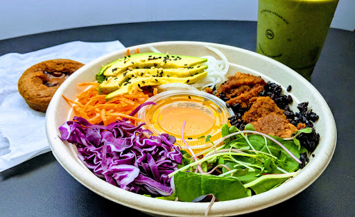 Read moreL'endroit parfait pour votre régal santé.Totalement parfait pour vos photos Instagram.Presque tout est fait maison et de suprême qualité .Finalement une cure contre les McDo et Mc infarctus du coin. Ils utilisent une des meilleures machines industrielles d'extraction pour leur jus.Ils tiennent tellement à votre santé...Que même l'eau pour faire votre café est filtré contre les contaminants.J'ai déjeuner et souper avec leurs créations a maintes reprises. Même eu des rencontres d'affaires.Ils ont l'Internet pour tous et les prix sont très concurrentiels si vous comparez a du semblable ex:sushi, commençal (et non du fast food /crise cardiaque a rabais) La propriétaire a eu le gentillesse de me faire la tournée dans la cuisine.Regardez mes photos et vous y verrez le tout.Un dernier mot en plus pour mentionner que les pièces en vente à côté de la caisse sont tous par des artisans et compagnies locales même les photos sont par des artistes locaux.J'aurais donné 6 étoiles s'il y en avait à...