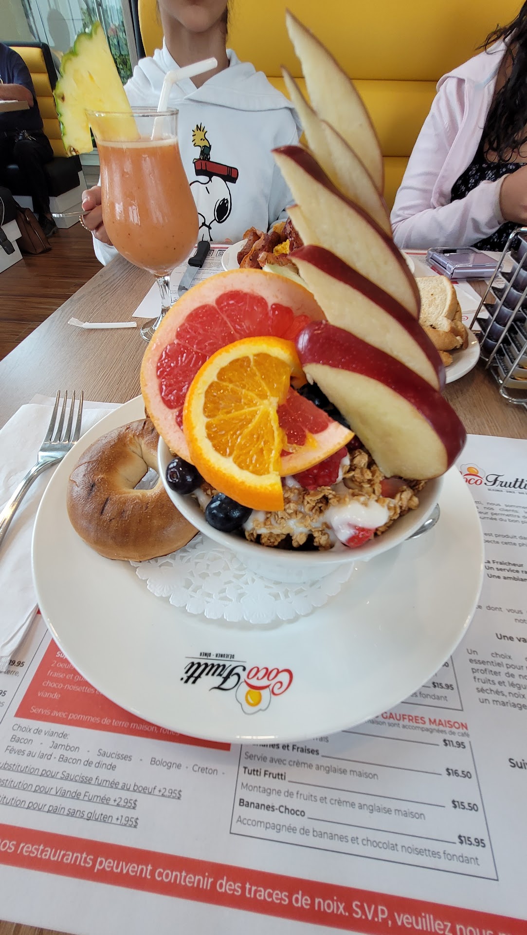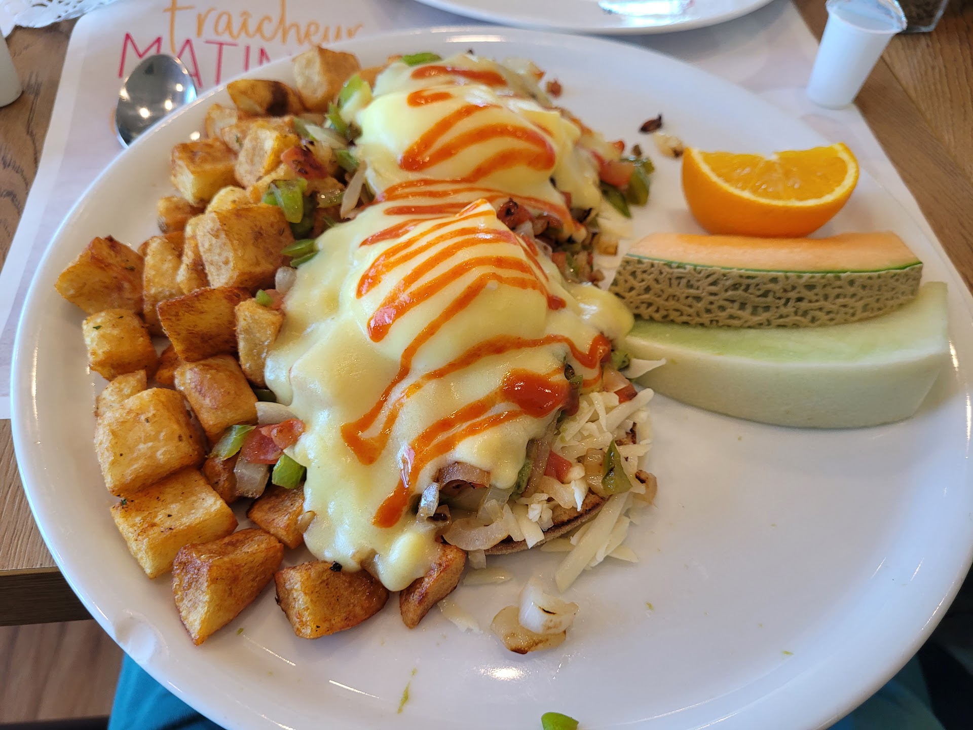 Read moreQuand je suis arrivé, j'ai demandé une banquette pour deux (il y en avait deux de disponibles) l'homme à l'entrée me mentionne qu' il doit les garder pour un groupe de 4 qui avait réservé. Je me dit cool ! Un restaurant déjeuner qui accepte des réservations le weekend. Ensuite, un couple arrive avec leur enfant, l'homme leur donne une des banquettes et un autre couple arrive et il leur donne l'autre banquette. Je demande pourquoi? N'attendait t'il pas un groupe de 4 personnes?! Il me répond que tous le monde de mon groupe doit être arrivé pour être assis car c'est samedi. Ma sœur n'ai pas encore arrivé, donc j'attend.. je vois trois personnes arriver et devinez quoi ! Elle vont rejoindre d'autres personnes déjà assis qui les attendait! C'est n'importe quoi ! Je suis quelqu'un qui adore aller déjeuner, je connais bien le restaurant avec le même nom à Blainville, où j'ai toujours eu un excellent service et eux, ne raconte pas n'importe quoi à leur clientèle! Vous venez de perdre pas une future cliente mais des futures clients.