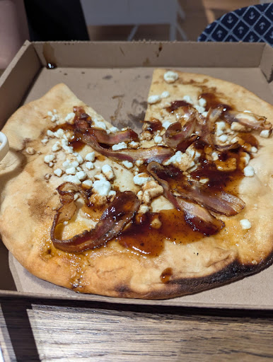 Read moreEn fait la pizza est la seule chose qui sauve la note pour moi. Heureusement c'est leur spécialité. Je retournerais surement chercher des pizzas en take out car l'endroit n'est pas confortable selon moi. Que des chaises hautes de styles bar/tabouret - les tables sont si près les unes des autres que c'est difficile de circuler entre les gens assis. Le service n'étais ni agréable ni attentionné. Les employés de la salle semblaient très blasés - ne parlaient pas assez fort, n'était pas plaisant ou souriants… personne ne venait vérifier si on avait besoin de quoi que ce soit ou si c'était à notre goût. Il y avait des erreurs dans notre commande et on a préféré la manger tel quel parce que ça avait été un peu long déjà recevoir nos entrées ( un mercredi soir). Selon moi l'entrée d'aranchini est un miss opportunity. Servire un tel plat sans sauce ni coulis de tomate est illogique - très sec.