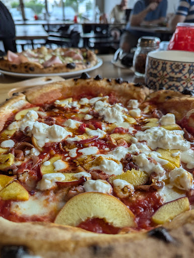 Read moreVery cute spot, bright and airy. Surely the terrace looks nice - it was raining when we visited. They have a wood oven for pizzas. The mortadella with a pistachio pesto and crumble one was delicious. The spicy peach burrata was just a tad disappointing... it was wet in the middle. Not the best textural experience. Tables were almost all dirty when we got there even though we were maybe six clients in the place. Service was ok. The real showstoppers are the beers, for sure. The selection was great, and we enjoyed many of them. Sad thing is the selection to go was so small. Bummer. I...