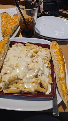 We went to Boston Pizza tonight, we were greeted almost immediately and sat super fast. We ordered a Bandera bread app which came out fairly quickly and tasted absolutely amazing. Our order got taken, she ordered Jumbalaya Fettuccine with extra marinara and I ordered Chicken Penne with extra Alfredo sauce and baked cheese on top. After she took our order she came back to reconfirm the order with us and tell us the price difference for if we got garlic bread or garlic cheese bread which we ordered as an add-on and we decided to get the extra one as garlic bread. Our entire order was written down when she took our order and then she also reconfirmed. When the food was brought out, mine had mushrooms, onions and tomatoes in it, which i had specifically requested to her 2-3 times that it wasn't on there, but no problem mistakes happen that's okay. I asked for it to be remade because I unfortunately do not eat many varieties of things. I ordered it with the cheese bread upgrade and asked for them to remake the cheese bread as well since I had wanted it with the pasta originally ( that's the whole reason I get cheese bread, is to dip with the pasta ) Next thing I know she brings me back the cheese bread and I reiterate what I told the gentleman who took it back originally. Then she tells me she might have to charge me for it since I already was brought the bread that I sent back ( ? at this point it seemed like she blamed me to the kitchen and didn't want to take responsibility for the mistake ) Anyways, we get it back afterwards and get the cheese bread remade ( which we were never informed on what was even going on with everything ) then we get the food, and it's LATHERED in luke warm sauce and has no baked cheese which is around 3.49 extra. Our server never checked on us to make sure everything was okay or anything like that. 20 minutes pass and she comes by the table and I asked her if there was baked cheese on it because I didn't see it, but maybe I missed it so I just wanted to be sure. She said she didn't see it either and turned away as I was trying to say something, she walked up to that gentleman ( I assume the manager i don't really know ) and used hand air quotations and went to the machine instantly, I wasn't given any information on what was happening, nor was it really resolved. I normally don't have issues, and I was still really nice through all of it, we barely saw our server the entire night even when there was only 1 other table in the start when we arrived. The air quotations were quite rude after she looked and agreed with us that there wasn't baked cheese, and the overall condescending attitude was really an experience killer for us. We were planning to get dessert right from the start but ended up just heading down the road to Crepestar and had a much better end to our night.