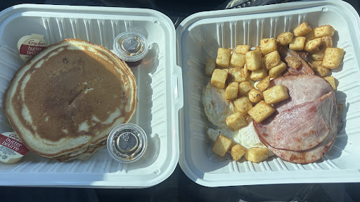 Food came out that we ordered. The pancakes were under-cooked but we ate them anyways. Lol.