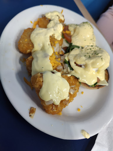 After 25 minutes our food arrived. Disgusting to say the least. My oldest child ordered chicken fingers, he bit into it and it was not only cold in the centre but pinkish and a weird stringy taste. I ordered an Avocado and Bacon eggs Benedict and my daughter ordered an Avocado and tomato egg Benedict. Not only was both dishes colder then a fridge, it wasn't Avocado but a cheap version of guacamole. The hollandaise sauce was like dried on paint. Next my mother in-law ordered simple French toast. Not only did it come out cold, but it was dry as hell. My father in law ordered blueberry pancakes...well, it didn't come out at all. Waitress must have forgotten to order those.
