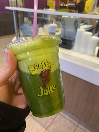 Read moreOkay- management really has to see and understand that something needs to be taken care of. The time I visited the store the girl was working alone and running back and forth worth all the clients. Sure she made no eye contact and lacks customer service skills but I assumed it was late night and she must be tired. I would arrange for an extra hand in the store. Not just because she looked tired to me- just so that the juicer can be cleaned- the pair of scissors that is being used to cut grass root is washed before it used. Booster juice brand has an identity and I felt it gone at this store. The vibe is so bla - won’t want to go here...