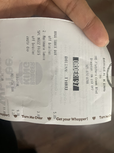 Today Feb 18 I decided to go to Burger King on fletchers Creek and Bovaird went through the drive-thru sat at the speaker box waiting for someone to ask me how they can help me I ordered just a burger with no onions.. The cashier lady repeated my order and then went dead silent I was thinking that she's going to tell me how much it's going to cost because at this point there's nobody in the drive-thru just myself.... Then she finally realized that she never said anything and asked me if there was anything else and I said no When I get to the window now she's texting on her cell phone and she doesn't open the window I'm sitting there waiting for her to finish her texting to whomever she's texting to... When she opens up the window she just seemed distracted and she was because I received my sandwich but I couldn't even get a napkin not one napkin in the bag That irritates me because they put so much sauce on it that the sauce ended up getting all over my hands and in my lap that I had nothing to wipe my mouth or my hands with so I contacted the store by phone to speak to the manager to say that the cashier needs to be mindful of what she's doing and at least give me a napkin also they only toasted the bottom half of my sandwich and not the top part of my sandwich which didn't taste very good to me and Yes, I can tell the difference! the manager said I'm sorry can you hold on She comes back on the phone and ask me what exactly is the issue with my order after I finish explaining the situation to her. My response is I can see why I'm getting the service that I am because the manager doesn't actively listen nobody seems to be paying attention to providing good service. I said it's okay I don't care to repeat myself because you're obviously not listening , I already explained myself to you and you put me on hold to come back to ask me what the situation is. Hence why I'm here writing a review Maybe somebody may reach out to me. Pay attention at the drive-thru each sandwich deserves a napkin stop texting on your phone and focus on the job at task It's not that hard I'm the only person in the drive-thru I can understand if you had a lineup and you made that small mistake but nobody was there and It would be nice if the manager could put on their listening ears. For this gets a 2.5 star...