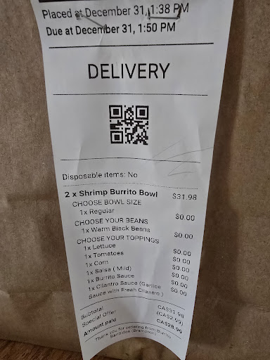 Avoid the tubby little Indian girl in the evening, she has no idea how to serve customers. I got the "special bbq chicken" bowl, and when I asked for sauce and salsa she refused to serve it. She claimed that the flavors won't clash well... but did I ask for your culinary opinion? I figure out when I get home that the "special" is that they drizzle a few lines of bbq sauce on their regular chicken. I kid you not, it's just a regular chicken bowl with no sauces except for two lines of bbq sauce. This was the worst burrito bowl I have ever had in my life. I had to GO TO MY FRIDGE and put on MY OWN salsa, burrito sauce, and sour cream. Thank god I had these laying around in my fridge because it revived this bland and stale bowl which otherwise would have been inedible. Next time, just give the customer what they want instead of putting up a fight. What kind of burrito bowl is served without sour cream and burrito sauce anyways? Such a scam "special", it's probably a tactic to reduce their usage of condiments. If the chicken was cooked in bbq sauce, I could not tell because it was bland regardless. This is also not the first time this location has displayed...