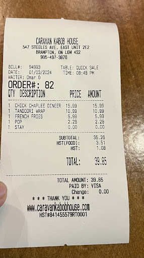 Delicious meal. Nestled in the heart of the city, Caravan Kebab promises a delightful voyage for your taste buds. As a lover of Middle Eastern cuisine, I ventured into this establishment with high expectations and left with a satisfied palate. The restaurant exudes warmth and authenticity, with its charming décor reminiscent of a traditional Middle Eastern setting. The subtle aroma of spices in the air adds to the immersive experience, making it an inviting space for both solo diners and families alike. Menu Variety:Caravan Kebab offers a diverse menu, featuring a tempting array of kebabs, wraps, and mezze platters. Whether you're a carnivore, vegetarian, or somewhere in between, the menu caters to all tastes. The star of the show is undoubtedly the kebabs, available in various meats and expertly seasoned. Signature Dish - Caravan Mixed Grill:For a comprehensive taste of their offerings, I opted for the Caravan Mixed Grill. This platter featured succulent lamb, perfectly grilled chicken, and flavorful beef, all accompanied by an assortment of grilled vegetables. The meat was tender, showcasing the prowess of their culinary expertise. Flavor Explosion, Each bite was a symphony of flavors. The kebabs were marinated to perfection, with a delightful blend of spices that danced on the palate. The accompanying sauces, especially the garlic yogurt, added a creamy and tangy dimension, enhancing the overall taste. Portion Size, Generous portion sizes make Caravan Kebab an excellent choice for those with hearty appetites. The mix of meats, paired with sides, ensures a satisfying meal that leaves you content without feeling overly stuffed.Service, The staff at Caravan Kebab are attentive and friendly, providing recommendations and ensuring a pleasant dining experience. The service is prompt, allowing patrons to enjoy their meals without unnecessary delays. Finally, Caravan Kebab is a gem for enthusiasts of Middle Eastern cuisine. The authenticity, coupled with the delectable flavors, makes it a must-visit. Whether you're a seasoned kebab connoisseur or a newcomer to this culinary journey, Caravan Kebab is sure to leave you with a...