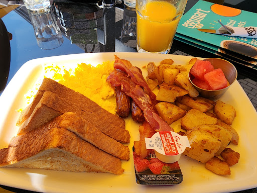 I went here for lunch with a colleague, and it was her first time at eggsmart where I have been multiple times at a different location. This was the first time I’ve been to this location and yes, given that its new, its clean and the place looks great. Food wise and presentation wise there are room for improvements. I got the chicken and waffles and I didn’t expect it to be chicken strips and a waffle, at that time I had better expectations but was greatly disappointed as soon as it was served; on top of that, they weren’t any fruits or whatsoever just a plain waffle and 3 chicken strips.