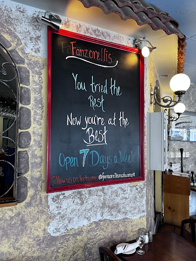 Read moreI dined at Fanzorelli’s last night with two friends. It was a Friday night and the place was packed. I had heard that it was a good place, but it was literally the worst dining experience of my life. Bad service, surly staff, bad food, over priced, dirty. We were seated at the bar, which was fine with us, but it was dirty. We were given a basket with four miniscule pieces of bread in it - for three people. There were more little plastic packets of butter than actual pieces of bread in the basket. We waited an hour and a half for our mains. It wasn’t clear who our server was, we had three different people serving us, none of whom seemed to be paying any attention to us, nor did they respond to our requests when we actually did catch their eye. We were going to a show at the theatre afterwards, and advised them of this, but they brought our food so late that by the time they brought it, we didn’t have any time to eat it so we had it immediately packed in a box and left. I scarfed down two cold, hard slices of funghi pizza from the box as we exited the restaurant, and it was so tasteless I threw the rest out. There’s more to say, but these are just the highlights. For all this, they only offered to comp our wine, but then, when they brought the bill, they forgot to take the wine off. Furthermore, we asked for separate bills, but they brought one bill. And for this lovely experience, they charged us $120 (after the wine was removed). I’ll give kudos to the nice waitress who finally cashed us out, she tried hard to apologize and make things better, but it was too little too late. The whole experience was so bad it was almost laughable. If you like paying high-end prices for mediocre food and bad service then you’ll love this place. It’s priced like a fine dining establishment, but it is not. Their MO seems to be to rip off the theatre crowd. We will never go...
