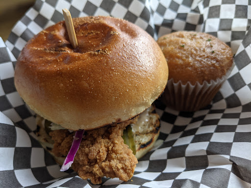 Read moreCame here on a Saturday between lunch and dinner because I was in the area and I saw the great ratings. The girl at the front cash was friendly and offered a few things when we told her it was our first time here. She recommended the crispy chicken sandwich and cornbread, even though it was a BBQ place. Prices were pretty decent for dining in, and they do have an extensive menu as well as a menu with daily specials.We paid, took a seat, and we were called up to the front when the food was ready. The tables were slightly dirty. Given it was during COVID, I would've expected decent cleaning between seatings, not to find bacon bits still scattered on the table from the last guest, so I ended up wiping down the table myself before eating. The food itself was good, but not amazing. The crispy chicken sandwich that was recommended was a little on the salty side, but was fried perfectly, crispy but still moist. The honey butter cornbread was made in a muffin tin, but quite dry and lacked the rich cornbread flavour and aroma. My partner also ordered a pulled pork sandwich. There was a depth of flavour, but you could feel that the pork had been sitting under a heat lamp for quite some time as the pieces were dry. The one highlight of the visit was their rack of rare candy / soft drinks on display. They had quite a few candy / chocolate bars and soft drinks where you wouldn't be able to find in an average store. I was hoping for a little bit for of a wow factor during my visit, given the ratings and reviews, so hopefully, it'll be better next time I'm in the area and decide to stop...