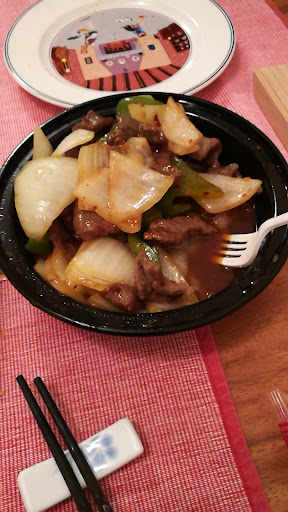 Upon arriving home; I discovered that I've just have ordered the stir fry green pepper and onion dish instead. The dish had little actual beef, I guestimate 25-35% of the dish is beef.