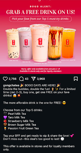 I had the pleasure of visiting Gong Cha, a popular boba store that is well-known for its delicious drinks and vibey atmosphere. My experience at Gong Cha was amazing, thanks in large part to the friendly staff and the lively environment.