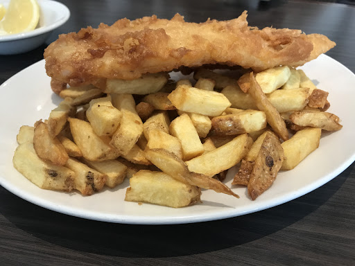 Read moreService was excellent. The waitresses were very polite and friendly. The food arrived quickly. I had the halibut ($15 fish only), the fries ($3) and the dinner upgrade ($5) which included a fountain soft drink ($1 extra if you want refills), 2 slices of Scottish bread and butter and one side from a list of choices that included mushy peas, cole slaw, beets, pickled onions or beans. I chose the creamy cole slaw. The portion sizes are very large. I couldn't finish my bread, coleslaw or fries (and I eat quite a bit). The fountain sized pop was also large. The food was very good. The fish was a little bit tough to cut through and was thin but tasted good all the same. It's not the same quality as Olde Yorke Fish and Chips in Toronto although I haven't ever found a place that compares to that. For two of us to have the halibut, chips and dinner upgrade came to nearly $52 plus tip. No complaints. I'd...