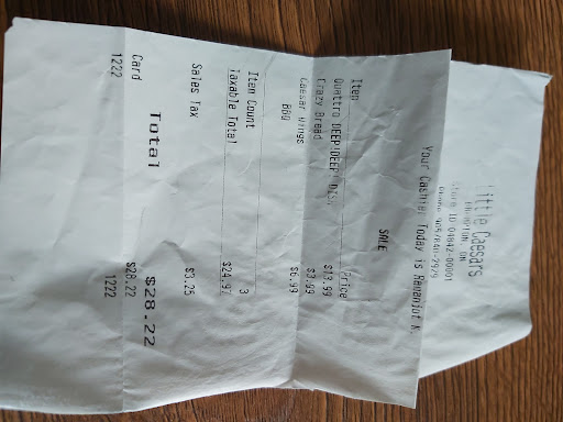 Read moreLittle Caesars is one of my favourite Pizza joints, and as a chain it gets 5 stars, but this location is just ok. If you are looking for the standard hot n ready you should be fine, but every time I order a specific Pizza I have a problem. Once I paid for double mushrooms and received a grand total of five mushrooms. When mentioning this to them before leaving they all come from the back and become argumentative as if I'm causing a problem. That's how many mushrooms we put on I was told. The next time I ordered double mushrooms it's like they dumped the mushroom bin on my Pizza. I don't know if little Caesars corporate has processes in place to ensure consistency, but if they do, they should audit this location. The staff is friendly enough unless you have an issue. IMO, it's when you have an issue that they should be friendliest. To be clear, three stars is just ok, but it's not a bad review. I would still go here for a Pizza, it's just not...