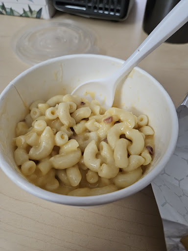 Can I just ask a question? Is cheesy flavour illegal or something? Why is it so hard for some places to make flavourful, cheesy mac? Literally just half a slice of Kraft cheese melted into the mac would make it 100x better. Please change the name to "plain mac (no cheese included)".