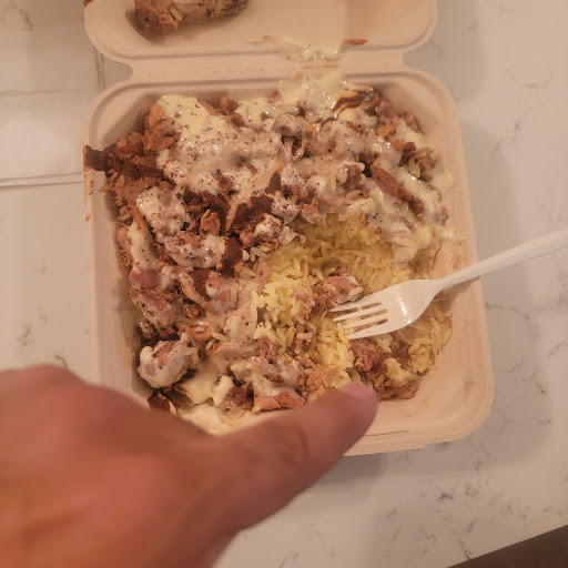 Read moreOpen late most nights. Decent friendly staff. Chicken on the rocks... Appears to be the favorite. Against most certainly vouch for the fact that this dish is an outstanding chicken rice dish Your food comes up quick and hot. Did you not serve MUG Root Beer ....A personal favorite of mine. I made mention of this particular can beverage. Often it can take a few friendly reminders, which I am happy to provide them with.. most establishments will take a note and stock the product. A convenience store in the same mini mall does have MUG root beer. I'm certain they would rather make the tiny profit my stalking it. The prices are decently average for the different dishes I have on menu.. all of which looks Simply Delicious on the signage above the counter. PS ... if they happen to ask you if you would like the hot sauce they have provided for us, do yourself a solid by using precautionary measures....such as having one of the staff help you decide by dipping a toothpick into the very tasty hot sauce. I made a slight oversight when I had him distribute a healthy amount across my chicken and rice. Ordinarily, I would have finished this by the time I got home within 10 minutes. It took me 45 minutes to eat at because I struggled with the heat it provides. So adhere to this warning, chicken and rice lovers.. after all, food is not funny neither is slashing up your mouth with...