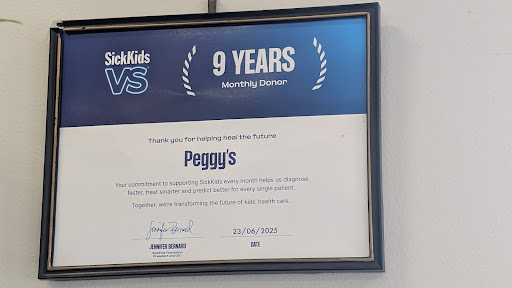This was our second time at Peggy's for breakfast and we enjoyed it as much as our first time. The food is delicious, the place is small but clean and the staff are very friendly and helpful. The area is an industrial area so it's not an usual place for us to go for breakfast but we went there for the good food. I ate the breakfast with toast, pea meal bacon and eggs and my husband ate the one with 3 pieces of grilled chicken. We also had a coffee each. This time we were very happy that we got a chance to speak with the owner Peggy herself and learn about her family history, her current family and her entrepreneur zeal. She has also studied and taken the license and opened Peggy's opticals just beside her restaurant. She spoke of how much hard work is put behind the fresh cooked food that is sold at the restaurant. What also struck us as we were leaving was a plaque in the wall that was received by Peggy's this June from Sickkids for being a monthly donor for 9 long years. That is a business with a heart and I will always come back to support fabulous...