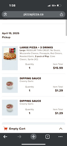 Read moreI live not even a 7 minute walk from this particular pizza pizza store. My son got to the store way before the pick up was ready. When he was finally helped at the counter they gave him out order. When he got home I opened the first box which was garlic bread and it was pretty much cold and already going hard. So I opened the pizza box and the cheese on the pizza was already hard and the pizza was literally less than Luke warm. I checked the bottom of the pizza box to see how hot it was and it was barely even warm. I called customer service right away and they were giving us a replacement. Had my son go back to the store and he waited there. I got a call back from customer service saying the pizza store was refusing to give a replacement to us. So I had my son call me and when I spoke to one of the employees he say that they did refuse the to make the replacement order and basically said that I was lying about our food being cold. Such very bad customer service. I've never had this issue so badly taken care of before. This is how they treat customers so I'm just putting that out there for others. I will be now buying from their competition pizza...