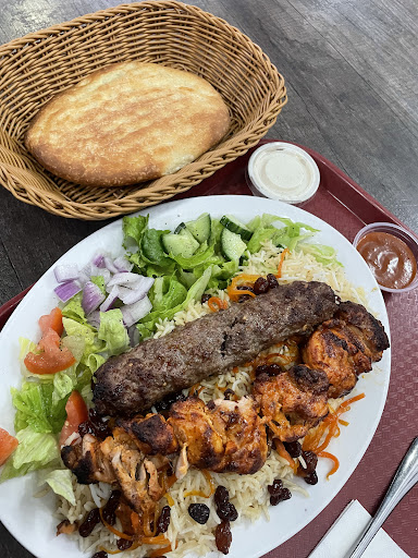 Food 5/5 The "The Sultan Kabob Platter" was my choice and it was just phenomenal, just absolute fire! Very Afghani authentic, everything freshly made to order, not the typical dried-out kabobs sitting around all day and stuck on a plate. I mean this dish tasted fresh, not reheated. One Kabob was chunks of juicy perfectly seasoned super tenderloin meat, the other was also very well-seasoned minced meat super tender and juicy. With the two kabobs came a very generous portion of rice, Afghani bread and salad along with two amazing dipping sauces. The basmati rice was delightful and very flavorful you could really taste the cardamom and cinnamon with hints of cumin and garlic in It. The salad was fresh with cucumbers tomatoes red onions and lettuce. The Afghani bread is always a joy to eat and from this place, it was no exception again very fresh. I have to say that the two sauces really stood out to me and were possibly the stars of this dish, The red tomato-based chutney was divine it was almost like a watered-down salsa with more of a lemon flavor and a hint of spice just the perfect dipping sauce for the meat, The white yogurt based chutney was so refreshing with strong hints of lime and possibly mint and cilantro again perfect dipping sauce for the kabobs. The platter itself was a decent generous-sized portion for one person but it was so good I probably would have fished two portions of it. It had a wonderful balance of flavor proteins and carbs. Great dish!