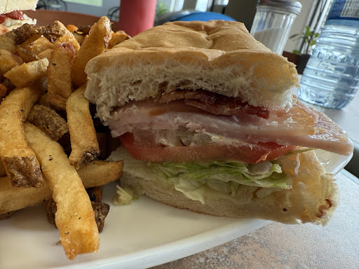 When I have to buy lunch I seek independent businesses. This one is a gem! Small dining area with a few tables. Lovely service and amazing food. I stopped after a business meeting nearby and stayed here to eat. The food they made was all fresh and delicious. I had the BHT (Bacon Ham & Turkey) with a side of fries. Portion was huge too!
