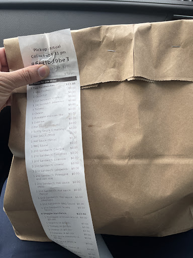 Ordered my food on ritual at 5:05 gave me a 23 minute wait. I got to the restaurant at 25 minutes. Stood in line, everyone walking by, no organization. I was finally asked to he served, I mentioned I have a pick up, used the ritual order number that was provided and they seemed like they had no clue.