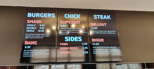 Read moreOrdered a double smash burger with fries. It was just enough food to fill up a hungry woman with an average appetite. Was considering ordering a single smash, but definitely would have still been hungry. The burger was juicy and very saucy. The meat was not very well seasoned, quite bland actually. Toppings were lacking. Got a good amount of lettuce and sauce, but had to go searching for the other toppings that were supposedly in there. The fries were Cajun fries. There was a seasoning on them, but not consistently flavourful in any way. The fries were appropriately crunchy, and stayed that way all the way to my house which was great. The cashier recommended a smash sauce to dip the fries- it is straight up mayonnaise. It’s supposed to be a mix of mayo and another sauce but it looked and tasted exactly like plain mayonnaise. Would not pay extra for the sauce. Would I come back? If I’m looking for a burger and don’t want McDonald’s or Burger King nearby, then yes. However, if I wanted a tasty, flavourful burger then this would not be anywhere close to my top 5.