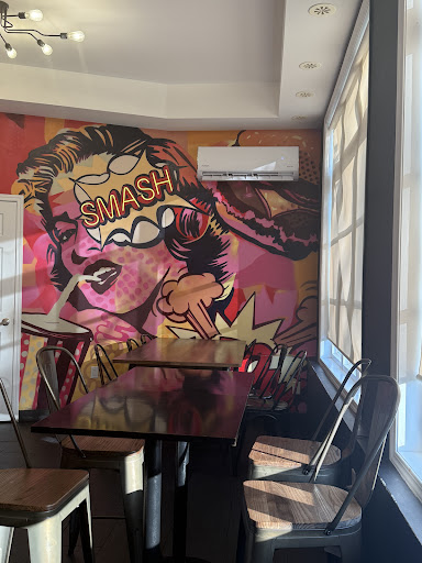 A new restaurant, the word "Smash" indicating freshly smashed ground beef. A gorgeous day and an empty stomach altogether make a dangerous situation.